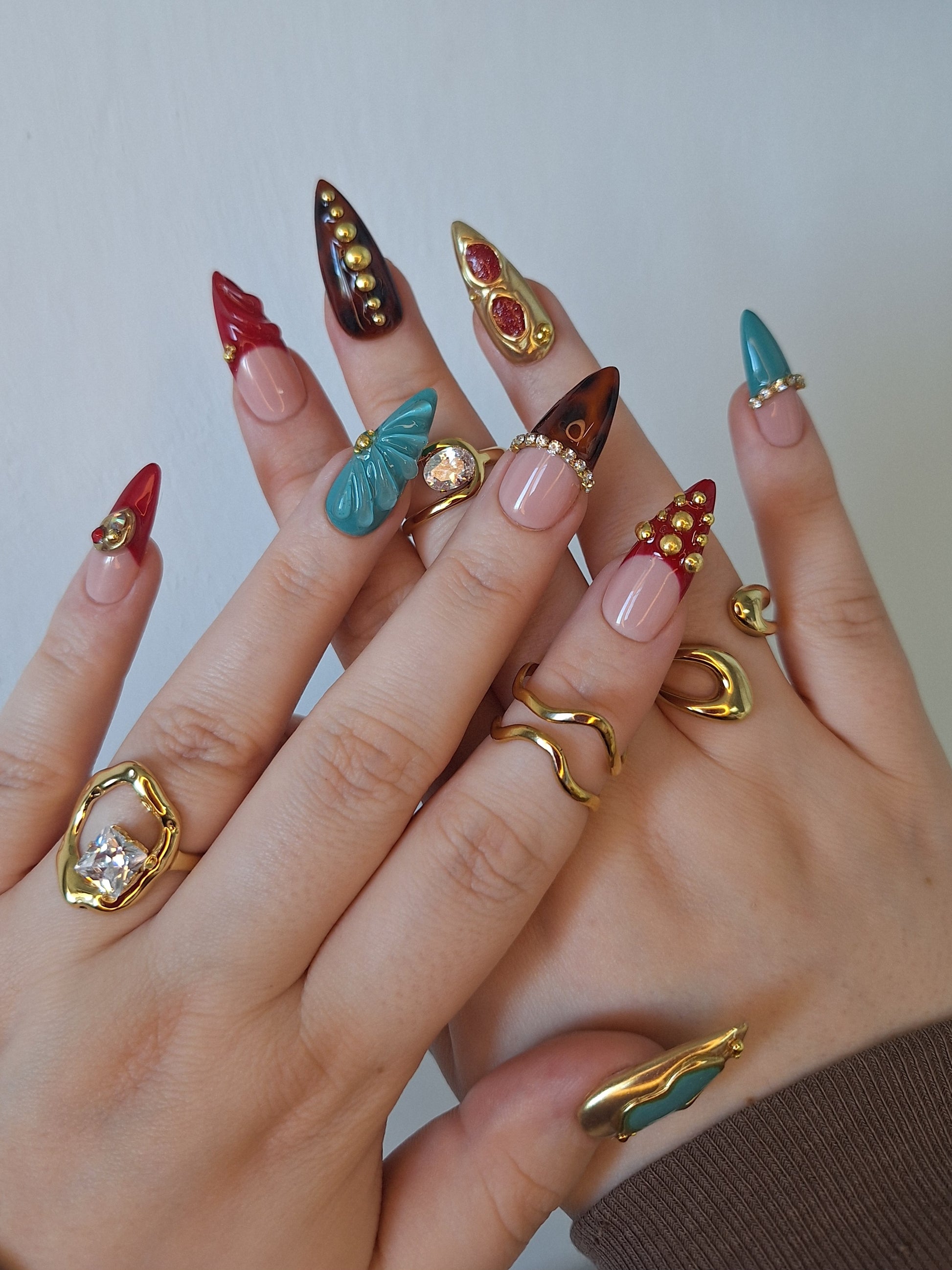 Each set comes with 10 nails in a clear display box and application kit that includes everything for an at home salon experience.