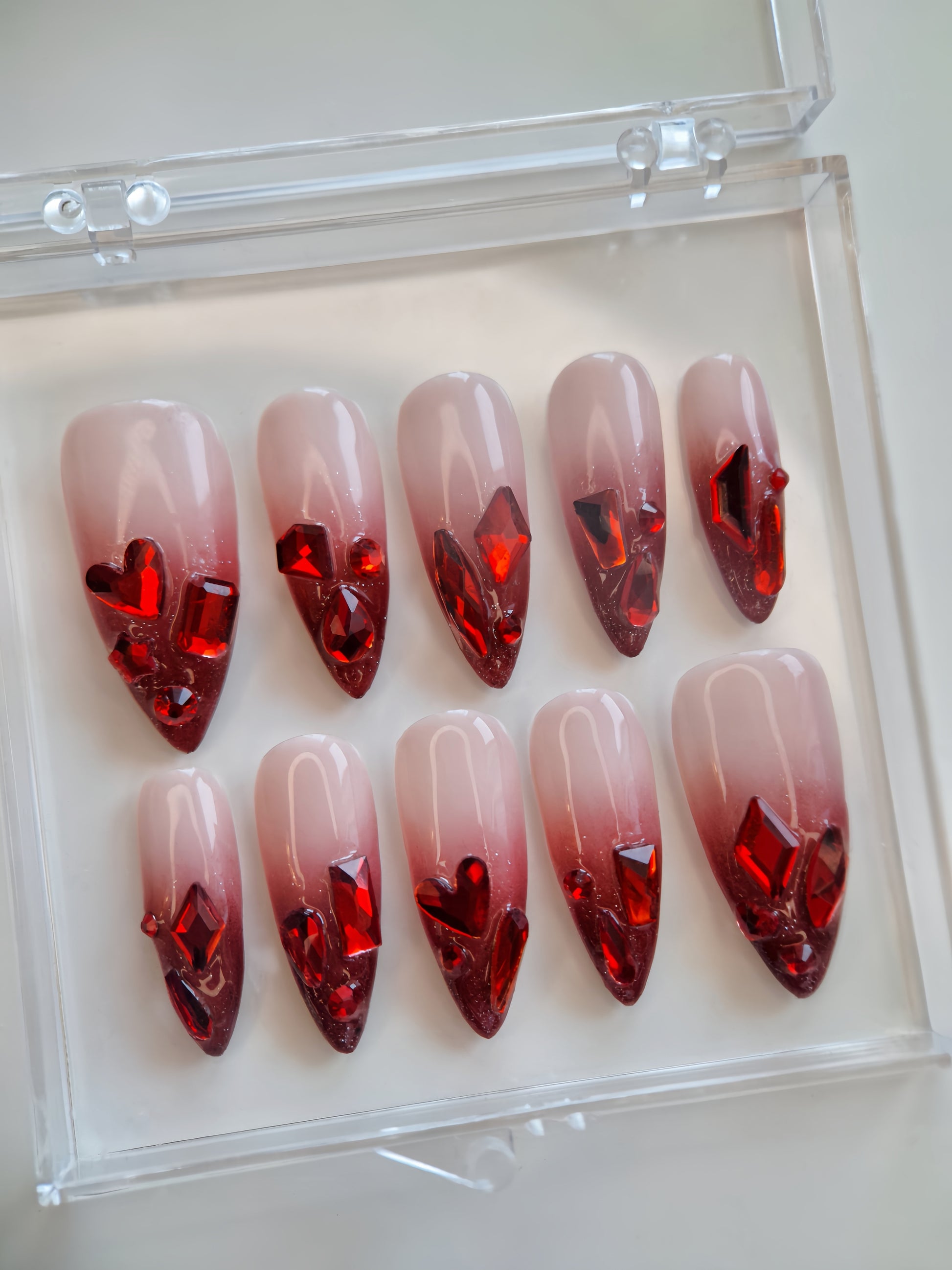 Each set comes with 10 nails in a clear display box and application kit that includes everything for an at home salon experience.